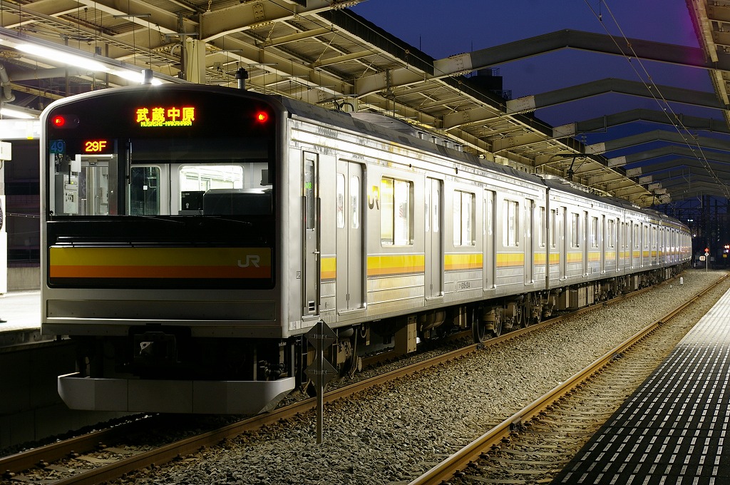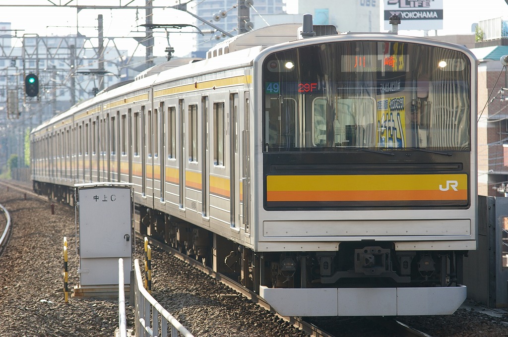 南武線は半年前から通っていて、最初は209系ナハ52編成がお気に入り編成でしたが、このナハ49編成の他の先頭改造車と違う仕様を気に入ってしまい、今では08-105Fに続く第2の愛車です。